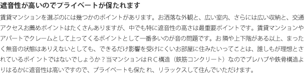 - 機密性が高いので防音性に優れている